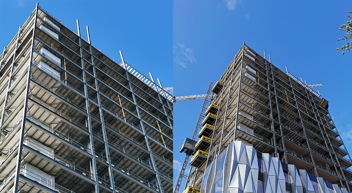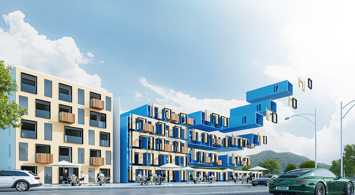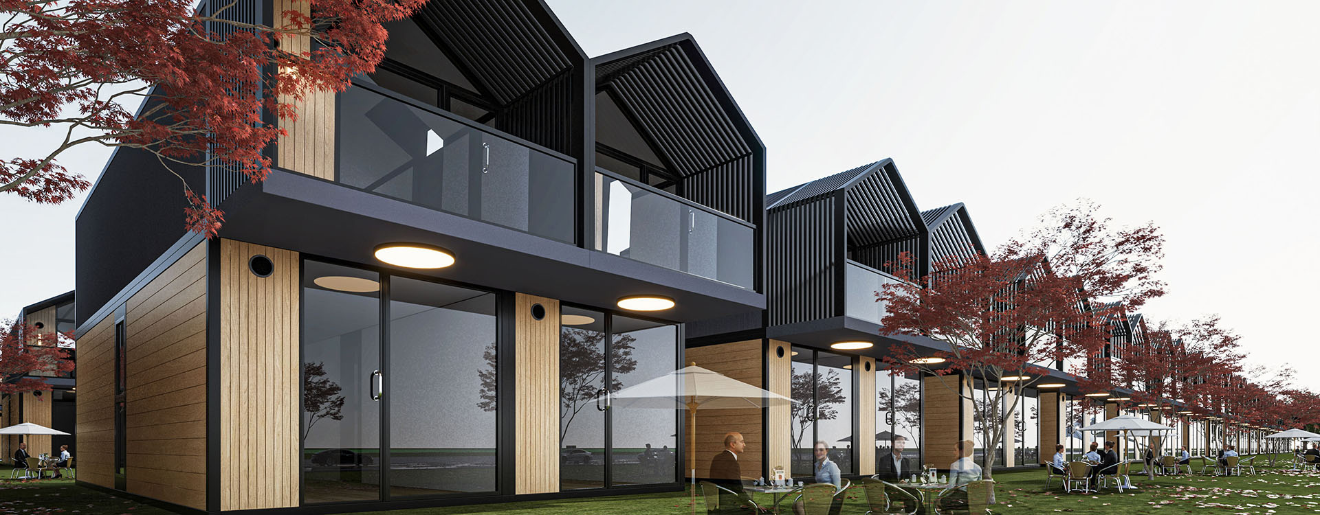 绿可钢结构三维模块装配式建筑体系是把建筑拆分成三维模块单元,并集成水电、装饰、设备于一体,整体运输到现场进行组装和堆叠的建筑体系。