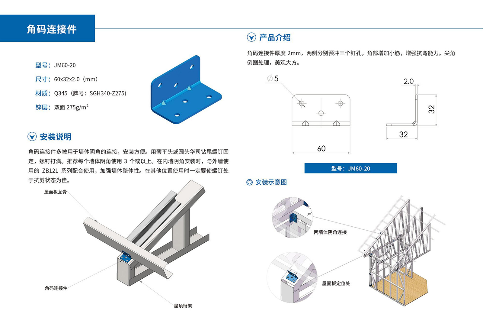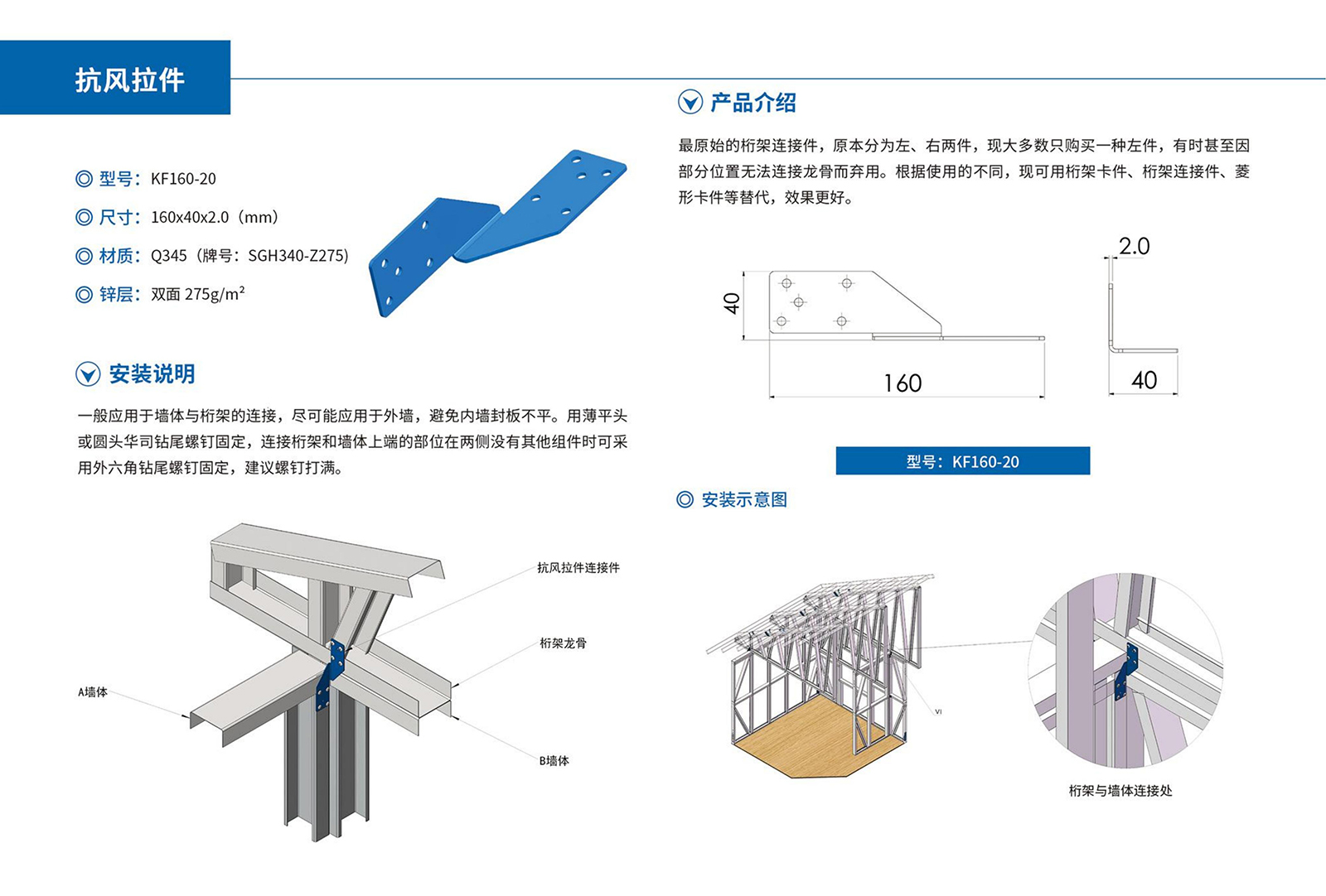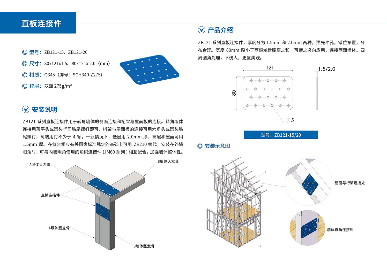 采用高强度、耐腐蚀的镀铝锌特种钢材,经工厂一体化成型,现场装配而成;