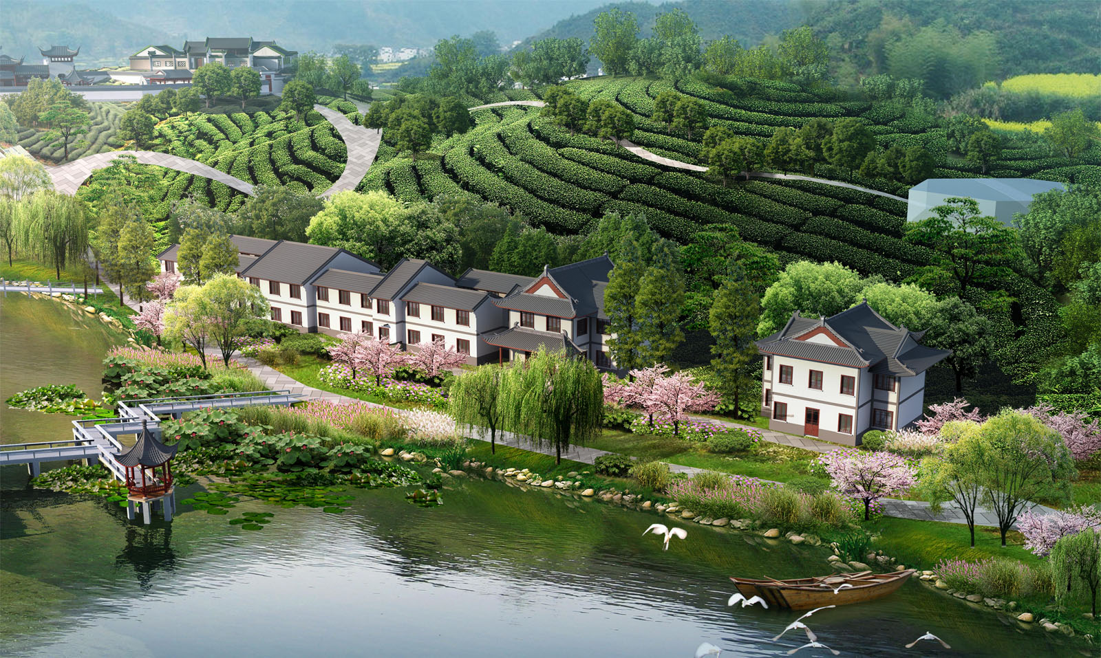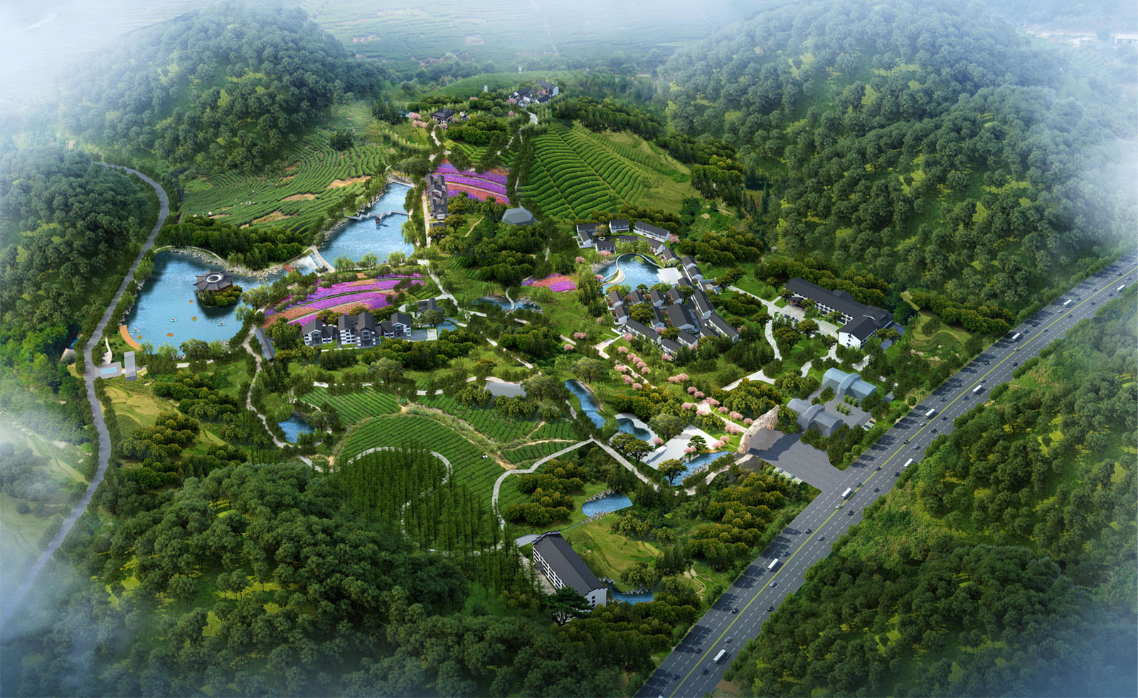 该项目以茶文化为核心,配套建设温泉酒店,餐厅,后勤管理用房,茶叶加工及展示的度假综合区。